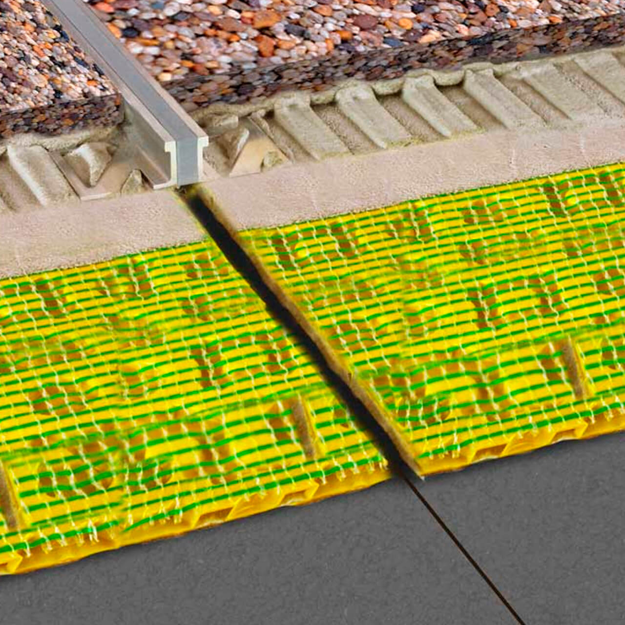 At these points CI++ matting should be split directly at the joint and a surface movement joint positioned directly in line above the subfloor / CI++ matting split.